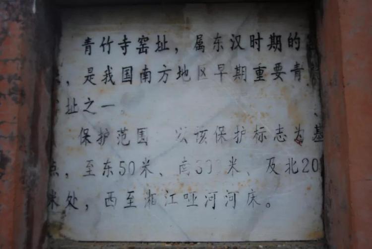 青竹寺窑址于1986年文物普查时被发现,窑址堆积部分在河水长年累月冲刷下,河滩上大量的红烧土和青瓷、陶片的堆积暴露在外,在河岸剖面也可见陶、瓷片堆积。当时采集了一些青瓷片,初步判断为较早的青瓷窑址,1988年11月省考古所由周世荣研究员负责与湘阴县博物馆联合对窑址进行了为期一个多月的考古发掘。发掘在沿河边已暴露的地方进行,共开探方8个,分南北两个区,北部在靠岸边挖三个5×5探方,发掘面积100平方米。在T1的第二层,地层中出土一块细方格纹灰陶片上刻有“汉安二年×月廿五日”的残片,从而确定了该窑址的绝对年代在东汉汉安二年(公元143年)。