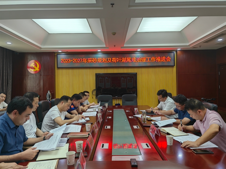 8月12日下午,我县召开2023-2027年采砂规划及荷叶湖尾堆治理工作推进会。县长刘世奇、副县长刘界雄、县政府办主任王锐参加。