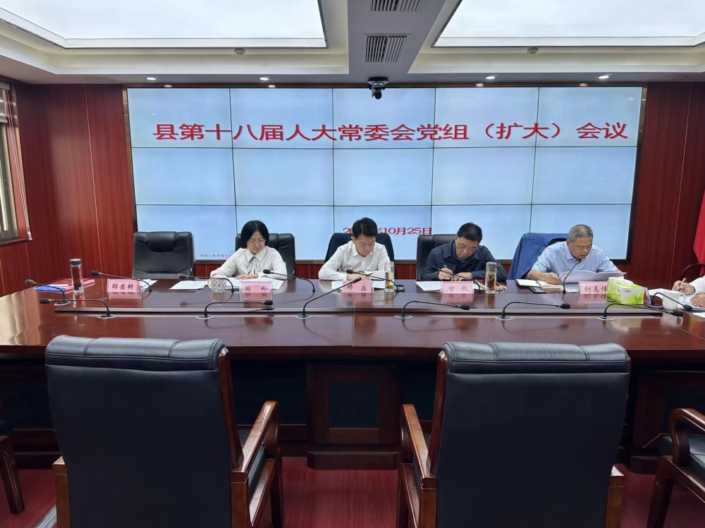 10月25日,县人大常委会主任邓淼主持召开县第十八届人大常委会党组( 扩大 ) 会议,县人大常委会副主任甘政、陶娜、刘志伟、邵凿耕,办公室主任郑剑参加。