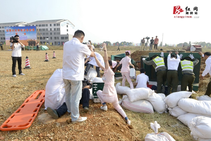 湘阴新闻网讯(记者 罗湘南 摄影 叶旭峰)10月22日上午9时许,一辆运送稻谷的拖拉机侧翻在鹤龙湖镇蟹都广场附近的渠道里,造成两人死亡、一人受伤。县农机局接到村民的报警后,随即向上级汇报。我县立即启动应急救援预案,迅速组织相关力量开始应急救援。整个演练过程紧凑严密、行动迅速,组织有序,各部门通力合作、配合默契,“农机事故”在最短时间内得到了妥善有效处理,演练取得圆满成功。