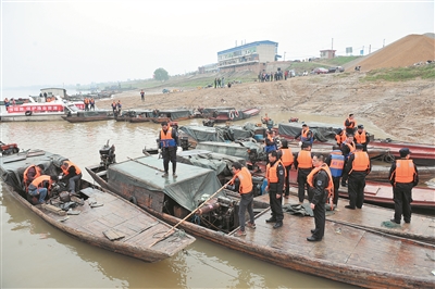 11月21日上午,湘阴县渔政管理站联合县海事处、砂管局、水上派出所等部门单位开展打击湘江湘阴段水域“电打鱼”突击清理整治行动,共有50余名工作人员、2艘起锚艇、4艘执法船只参加本次行动。
