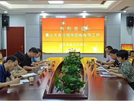 7月29日,县人大常委会副主任蔡炜和县人大社会建设委员会负责人一行调研我县医疗保障工作,并召开座谈会。