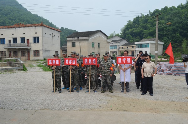 9时30分,在副县长、县防汛抗旱指挥部常务副指挥长张浩果下达演习开始的指令后,演习正式开始。两分钟不到,信息组、巡查组、转移组、医护组人员迅速集结。信息组工作人员率先出动,敲锣、示警,提醒周边群众山洪即将发生,准备转移。接着,巡查组成员兵分两路,迅速奔赴山体滑坡点监测灾情并反馈信息。