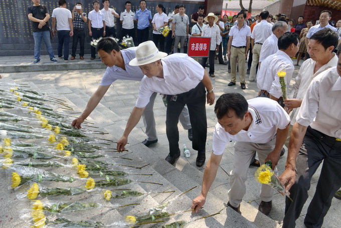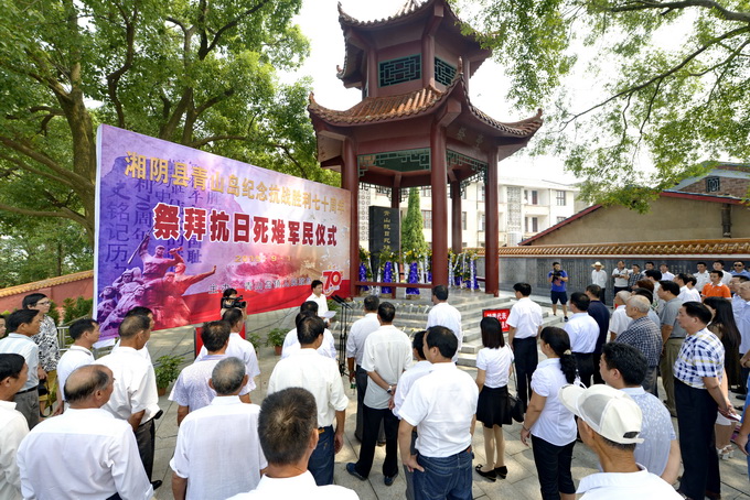 湘阴县青山岛纪念抗战七十周年祭拜抗日死难军民仪式