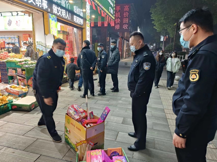 2023年1月10日晚,县全域禁炮办联合文星街道等多部门开展烟花爆竹联合整治行动。