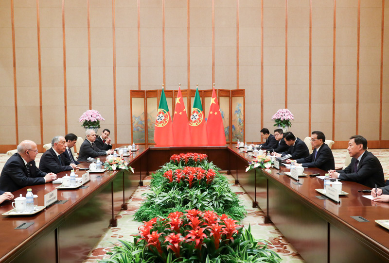 李克强表示,中葡是重要合作伙伴,两国关系持续健康发展。习近平主席去年对葡萄牙成功进行国事访问,为中葡关系深入发展注入新的动力。中方愿将“一带一路”倡议同葡方发展战略加强对接,拓展全方位合作,密切人员往来,持续巩固两国关系发展的积极势头。中葡都是开放、自由贸易的支持者和受益者,我们愿同包括葡方在内的欧盟国家一道,共同维护多边主义和自由贸易,加强在中欧、中国-葡语国家框架下的合作,进一步密切在联合国等多边框架下的沟通协调,共同维护世界的和平、稳定与发展。