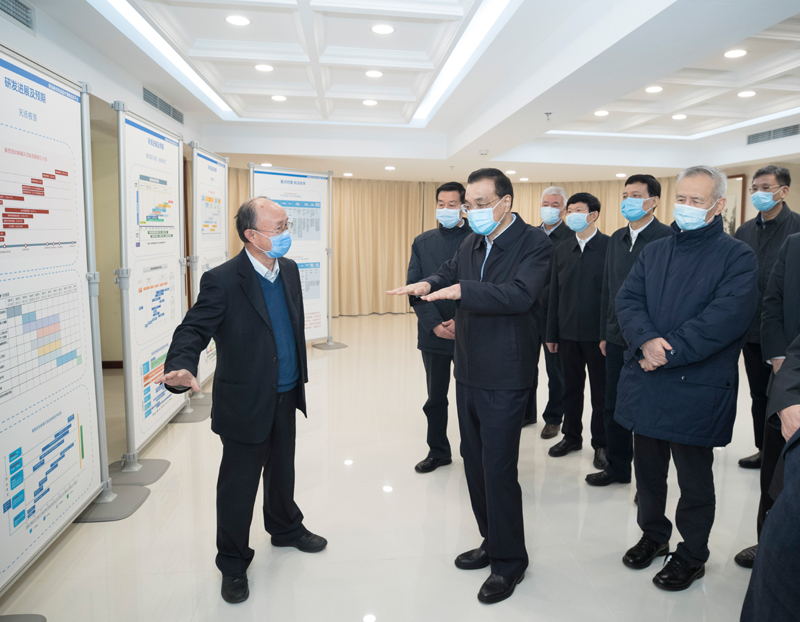 李克强特别关心疫苗研发情况,详细了解目前几条技术路线的进展、什么时候可开展临床试验。他说,防控疫情采取了多方面措施,但最终战胜疫情还要有疫苗。疫苗研发要持续加大力度,既要抓紧推进、早出产品,又要尊重科学规律、严格按标准保证质量,调动各方面优势力量面对面合作,潜心研究、联合攻关,同时瞄准重点方向加强国际合作,尽早研制出安全有效疫苗,给群众定心丸。