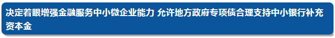 在今年新增地方政府专项债限额中安排一定额度,允许地方政府依法依规通过认购可转换债券等方式,探索合理补充中小银行资本金的新途径。