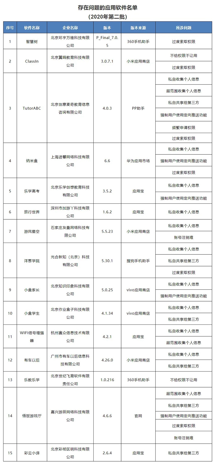 关于侵害用户权益行为的APP通报(2020年第二批)