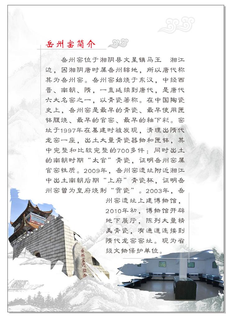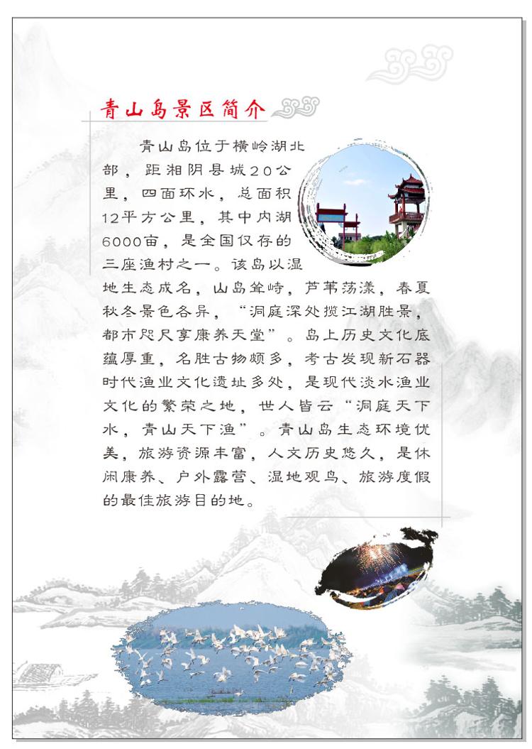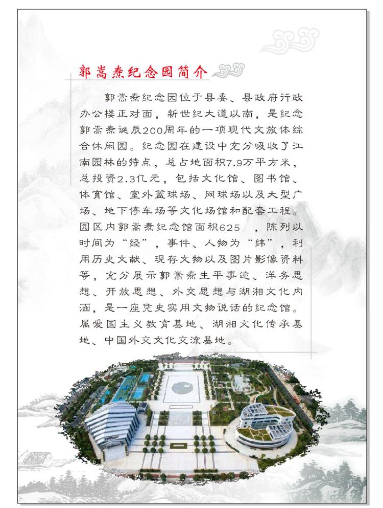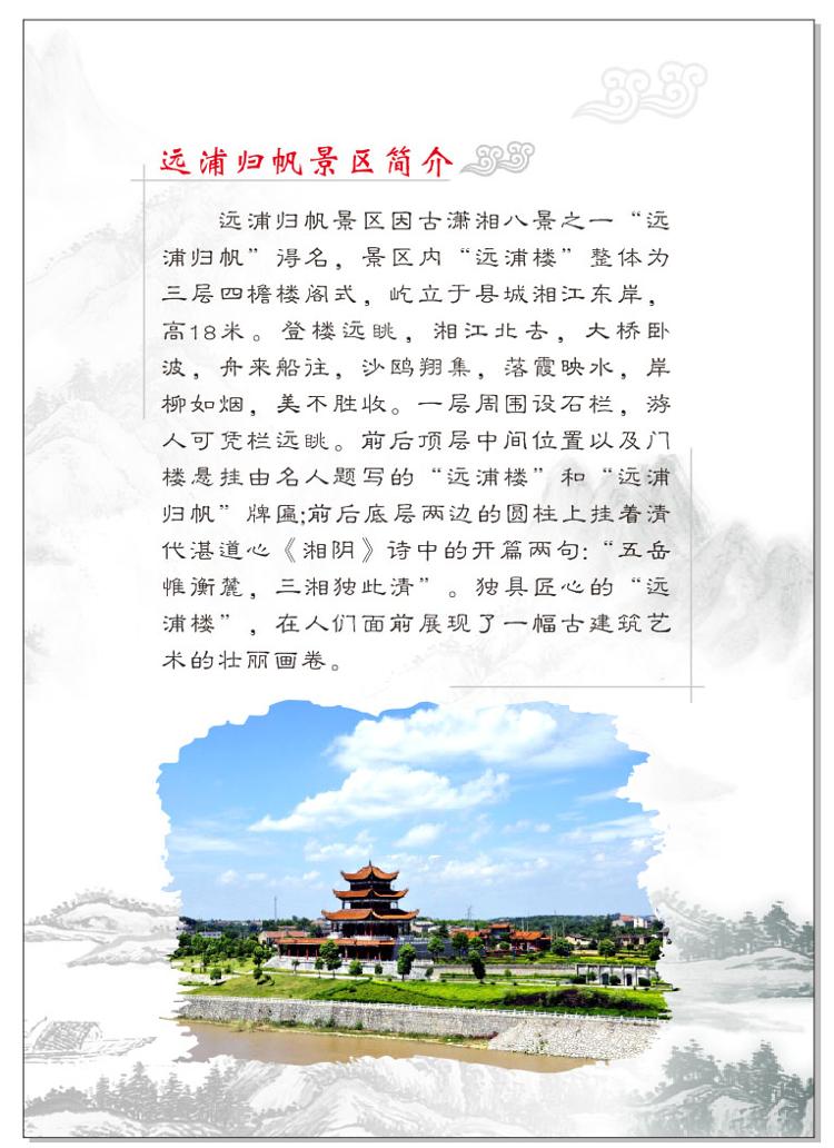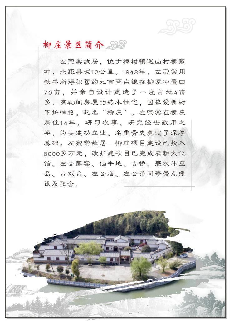 一、景区景点名称:①柳庄景区;②左宗棠纪念园;③左太傅祠;④郭嵩焘纪念园;⑤湘阴文庙;⑥岳州窑;⑦东湖湿地公园; ⑧远浦归帆景区;⑨鹅形山景区;⑩青山岛景区。