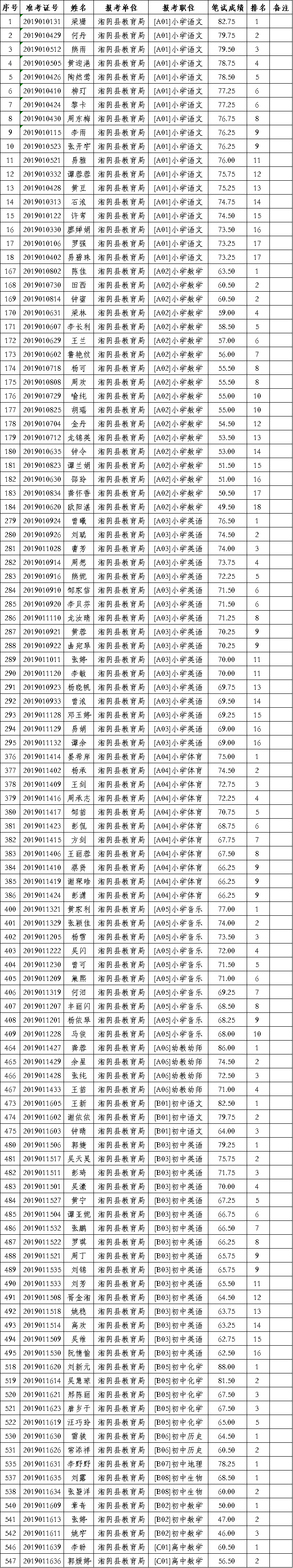 湘阴县2019年第二次农村教师公开招聘入围面试名单公示及资格复审通知