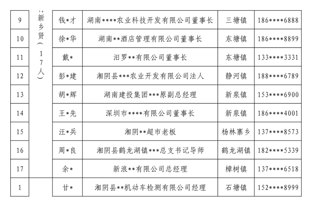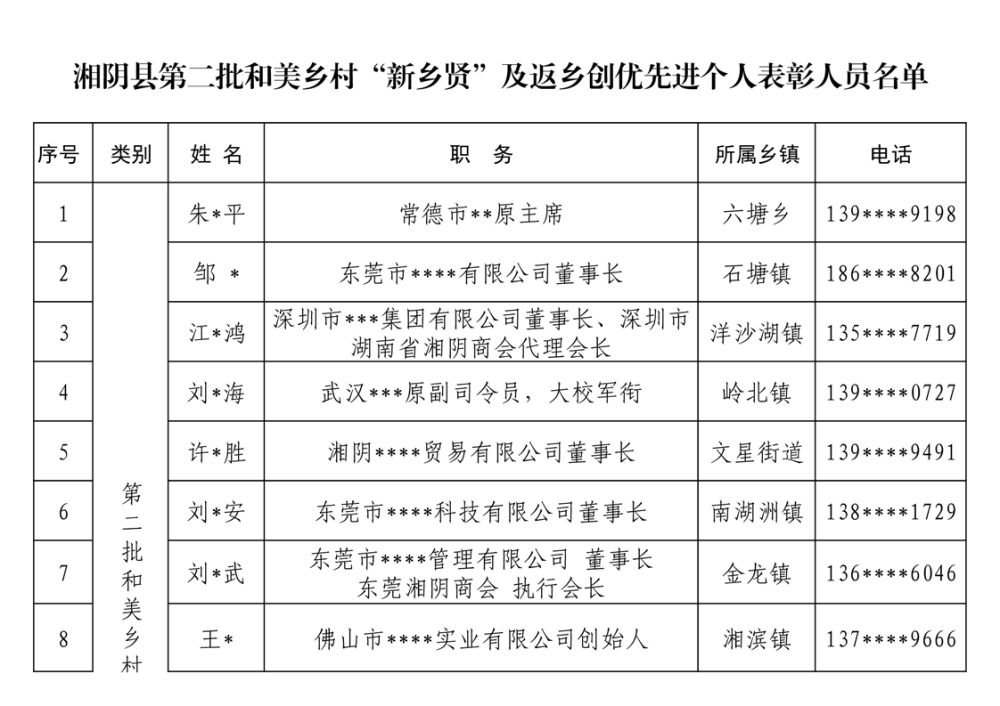 关于湘阴县2023年度第二批和美乡村 “新乡贤”及返乡创业先进个人表彰人员名单的公示
