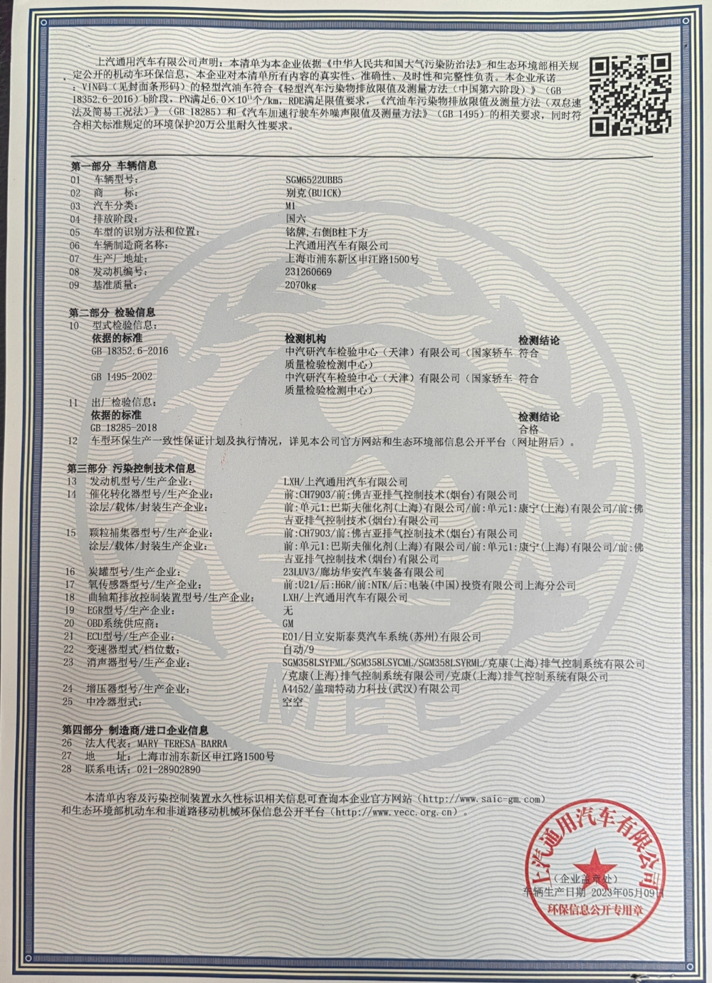 车主身份证原件,车辆合格证,一致性证书、环保清单、购车正式发票