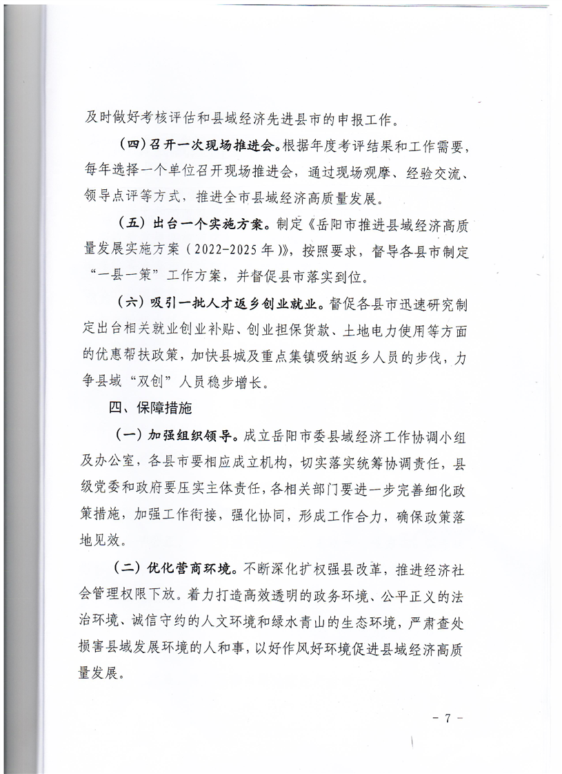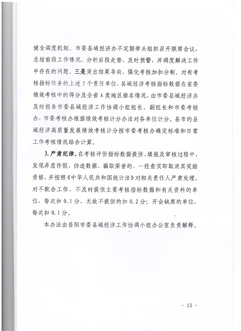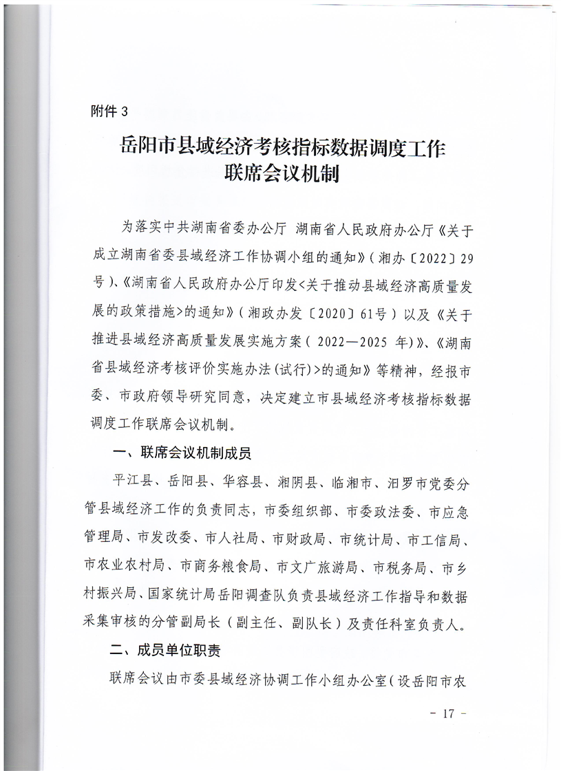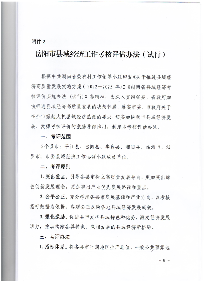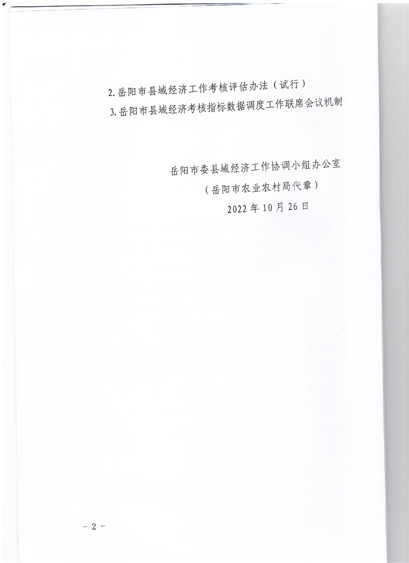 岳阳市委县域经济工作协调小组办公室关于印发《岳阳市推进县域经济高质量发展实施方案(2022-2025年)》《岳阳市县域经济工作考核评估办发(试行)》及《岳阳市县域经济考核指标数据调度工作联席会议机制》的通知