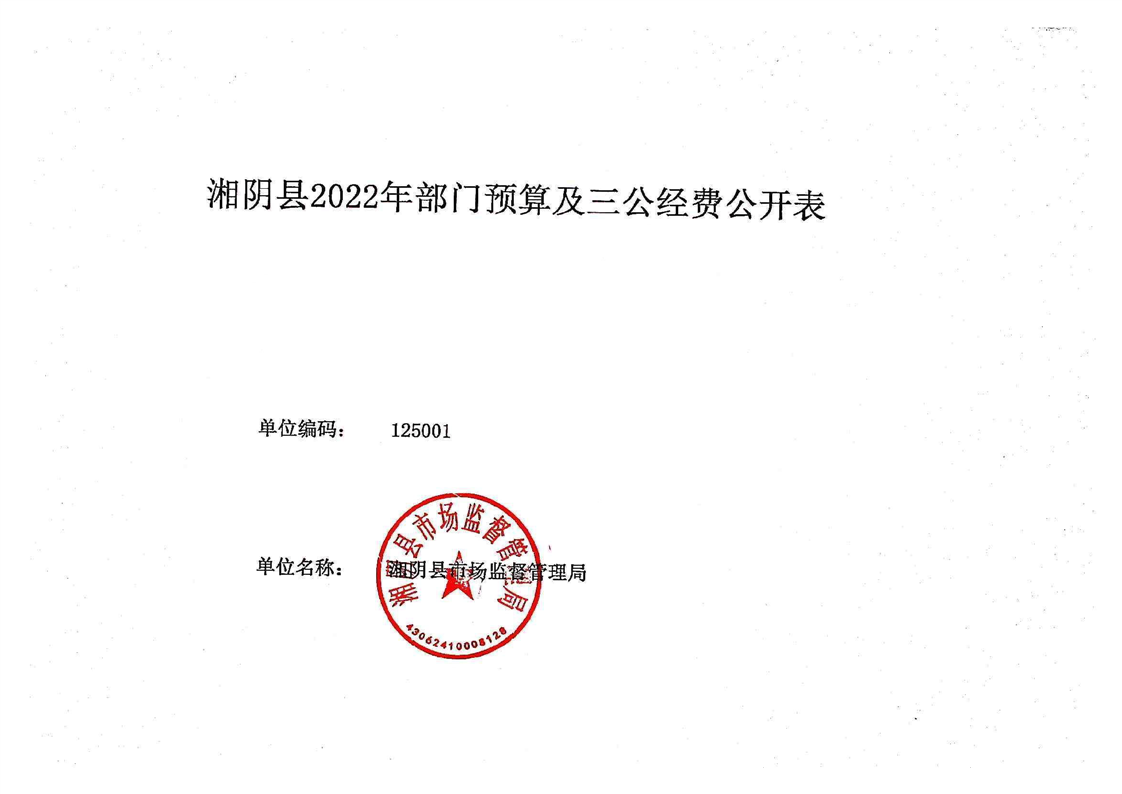 第一部分 湘阴县市场监督管理局2022年部门预算说明