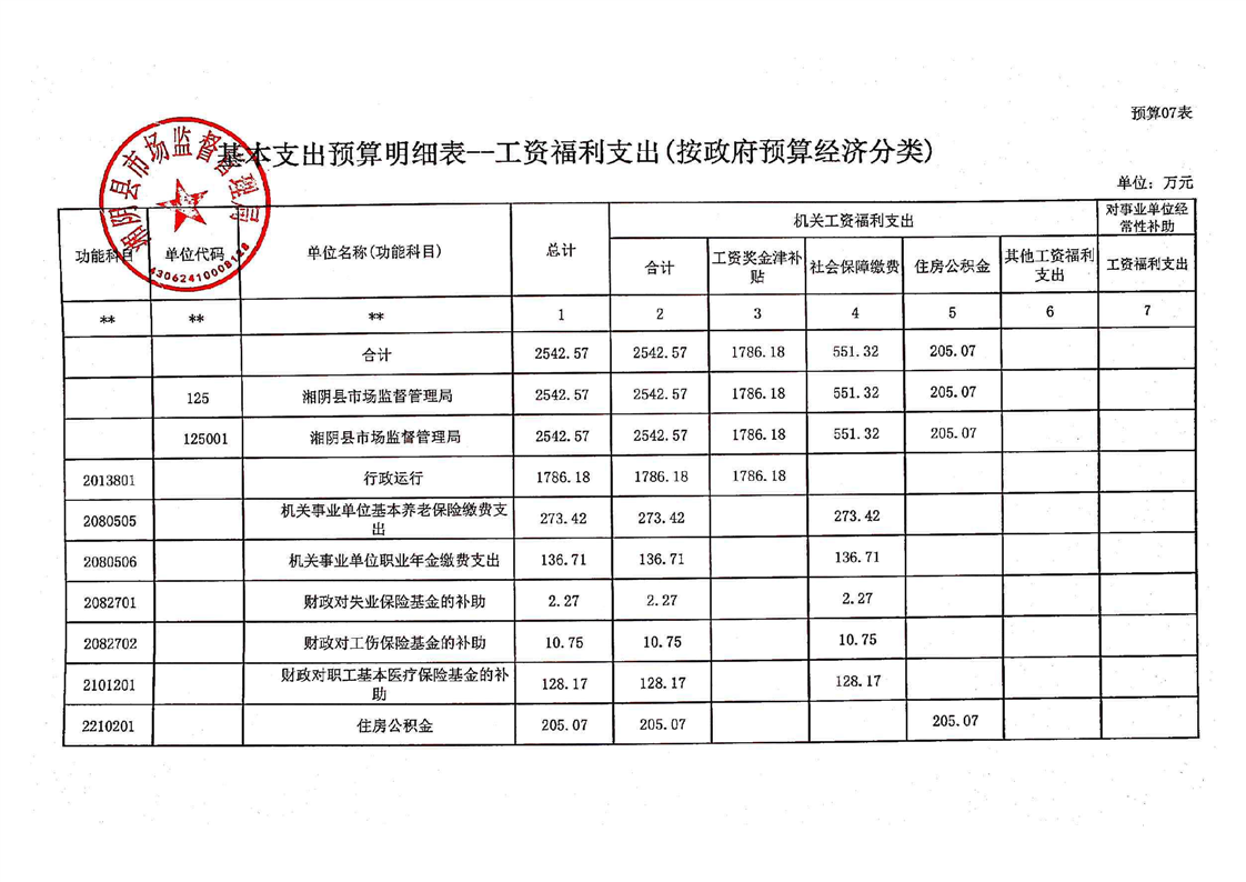 7、基本支出预算明细表-工资福利支出(按政府预算经济分类)