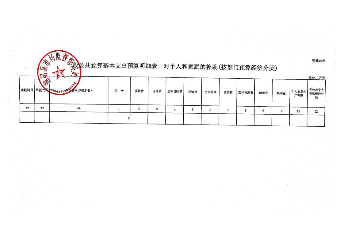 19、一般公共预算基本支出预算明细表-对个人和家庭的补助(按部门预算经济分类)