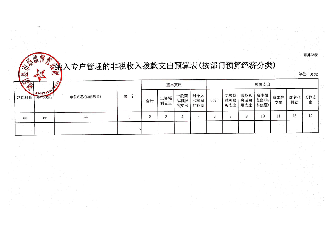 23、纳入专户管理的非税收入拨款预算分类汇总表(按部门预算经济分类)