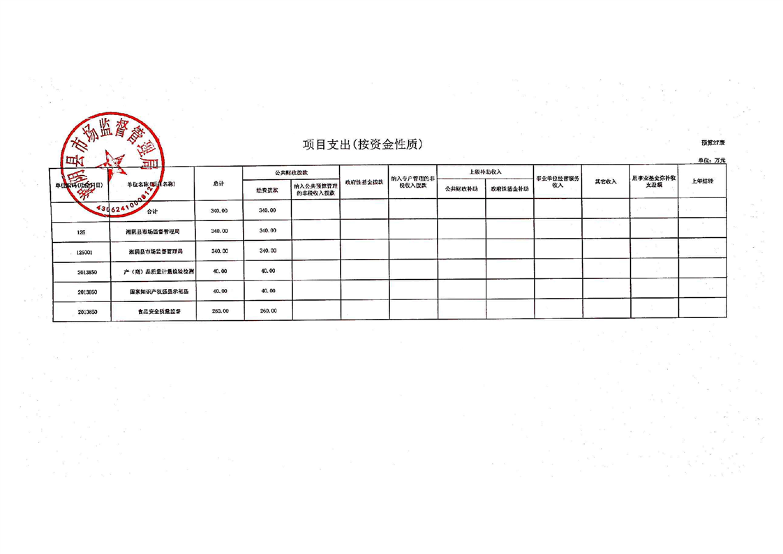 (二)项目支出:2022年项目支出年初预算数为340万元,是指单位为完成特定行政工作任务或事业发展目标而发生的支出,其中1、食品安全监管项目260万元,主要用于乡镇食品安全协管员39万元,食品安全信息平台、食品安全抽检及宣传125万元,食药品安全建设宣传及药品事务管理64万元。市场监管、企业年报、商标广告监管、网络建设、打假治劣、打击传销、取缔无照经营、消费者权益保护32万元;2、 产(商)品质量计量检验检测:主要用于医疗器械免费检定、检测能力提升、特种设备安全检察、工业产品质量监督检验、设备器械安全等40万元;3、国家知识产权强县示范县40万元。
