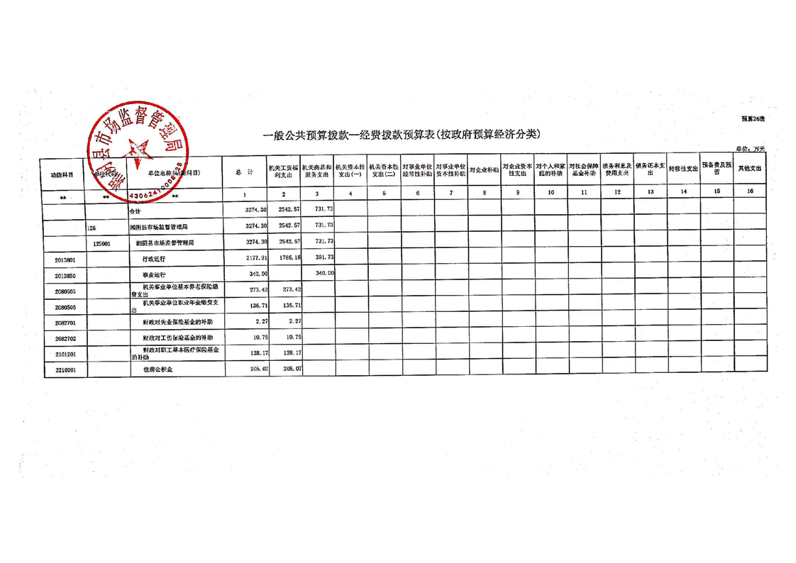 26、一般公共预算拨款--经费拨款预算表(按政府预算经济分类)