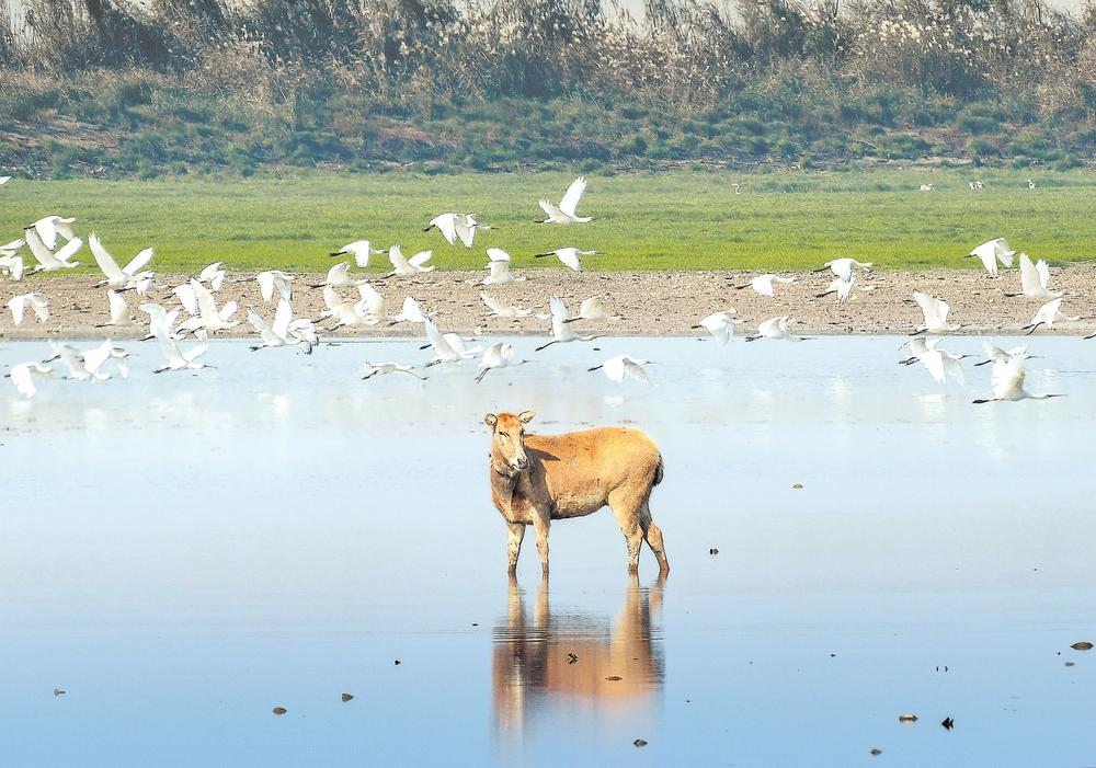 如今的横岭湖,碧波荡漾,每到冬季,候鸟聚集,其中不乏青头潜鸭、黑鹳、白鹤等稀有种群,浩荡羽族融入这一江碧水,如童话世界般令人惊叹。去年冬季,该保护区监测到越冬候鸟近40种,共计3万多只。