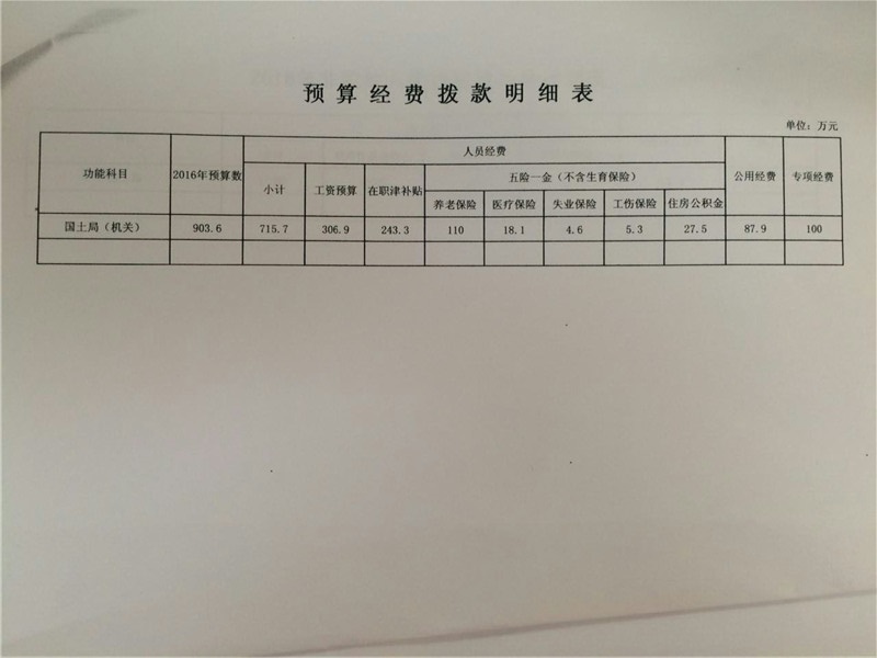 2016年国土资源局预算编报说明