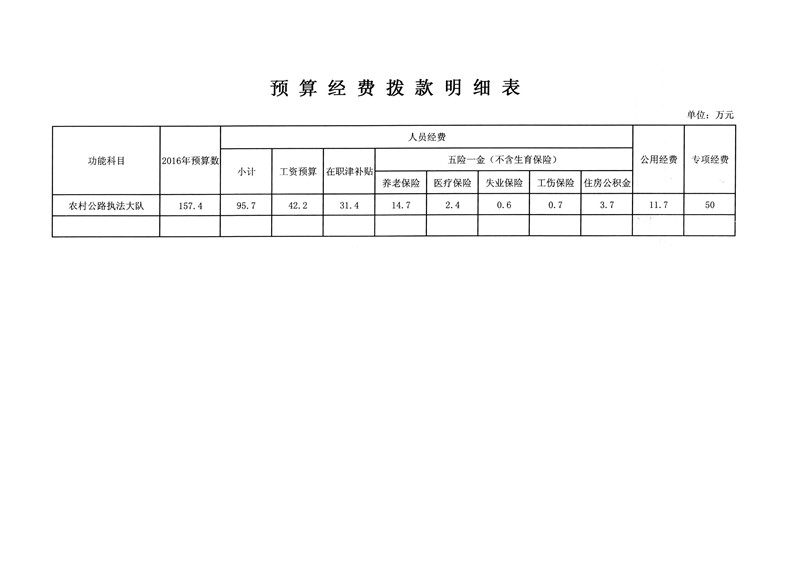 湘阴县农村公路路政执法大队2016年预算编报说明