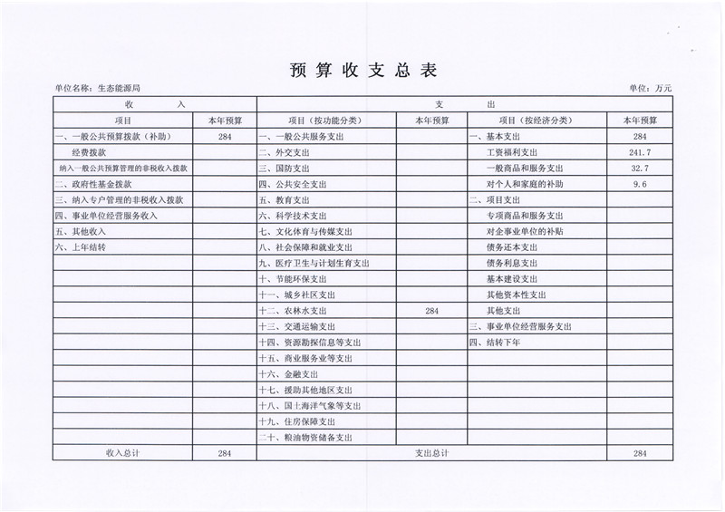 2、预算收支总表