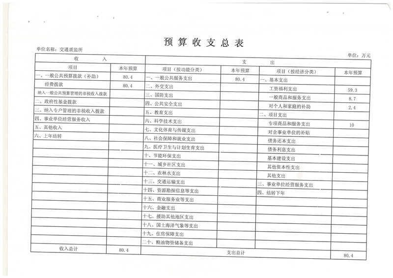 2016年支出决预算总计80.4万元,其中:财政拨款支出80.4万元。