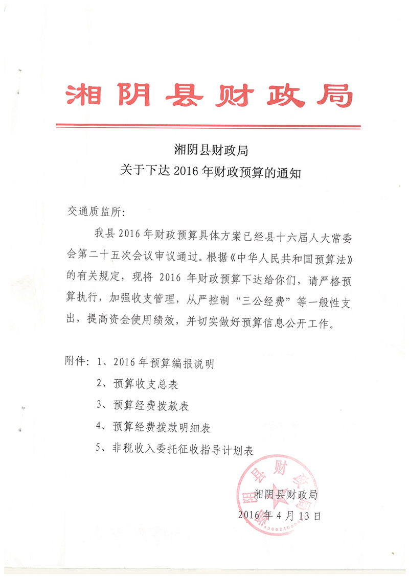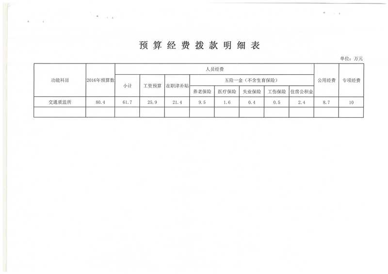 湘阴县交通建设质量和安全监督管理所2016年部门预算编报说明