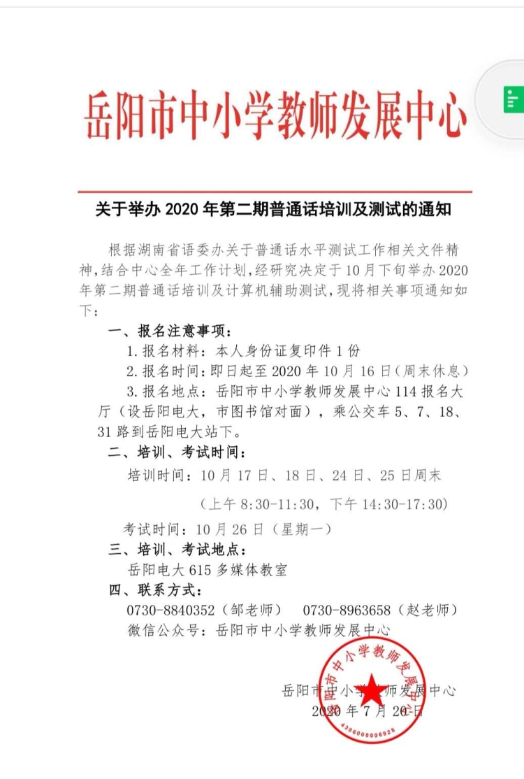 岳阳市中小学教师发展中心关于举办2020年第二期普通话培训及测试的通知