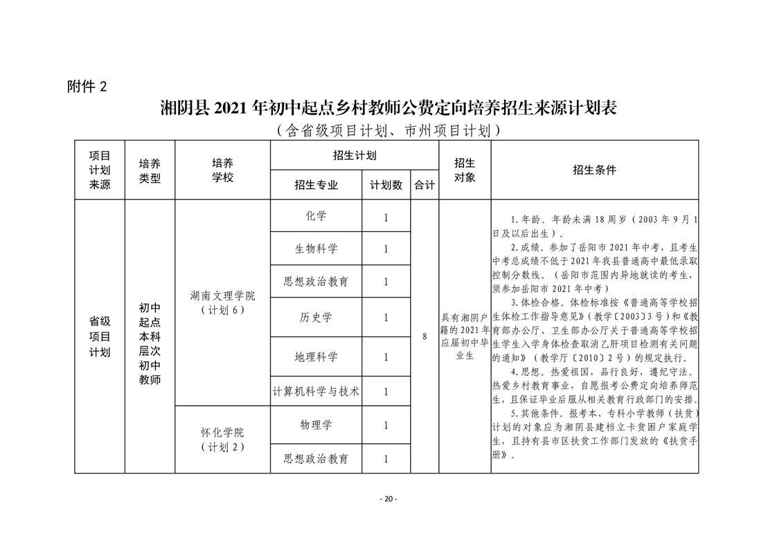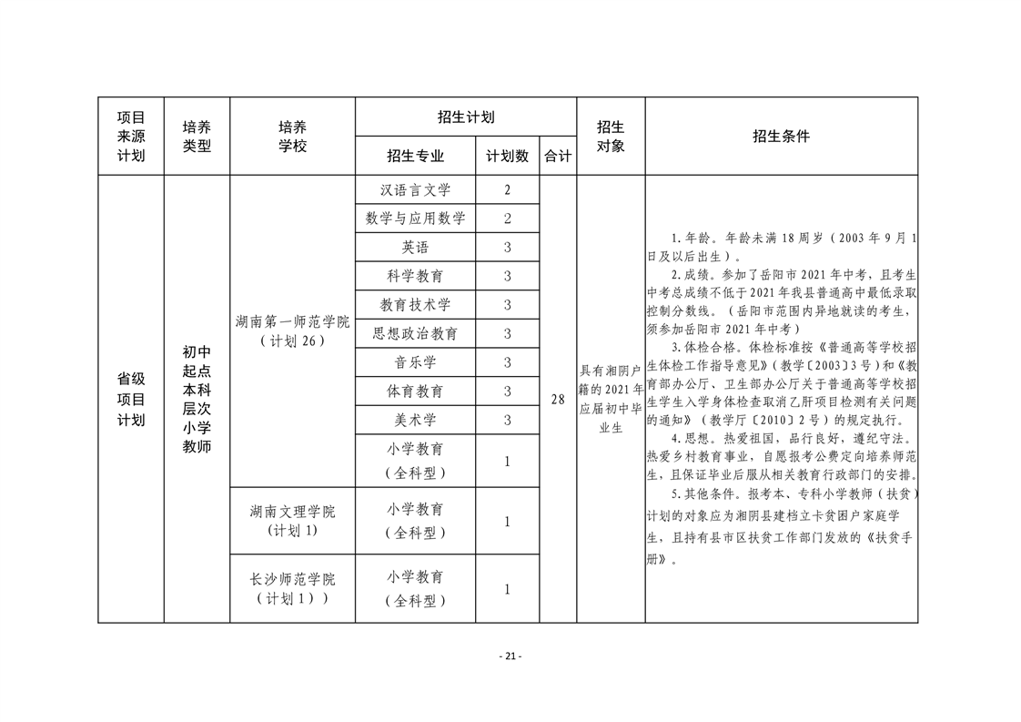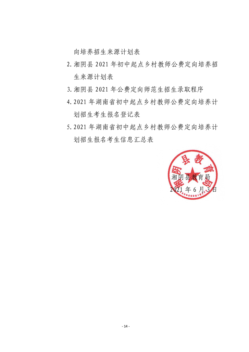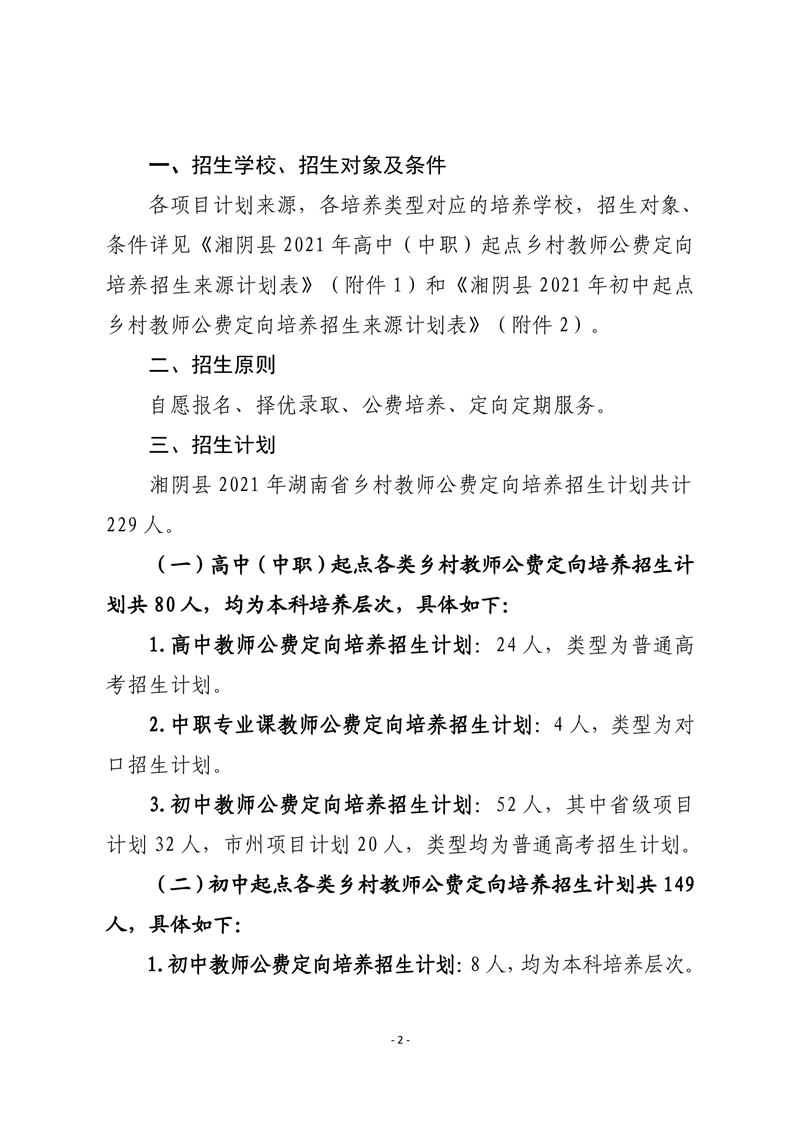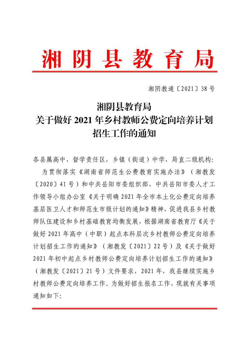 湘阴教通〔2021〕38号关于做好我县2021年乡村教师公费定向培养计划招生工作的通知