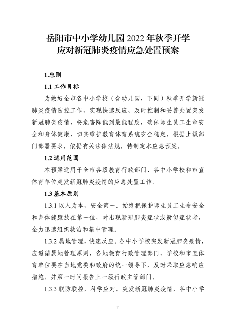 关于印发岳阳市中小学幼儿园2022年秋季开学新冠肺炎疫情防控工作方案和应急处置预案的通知