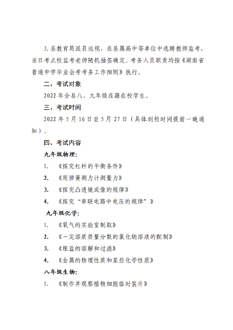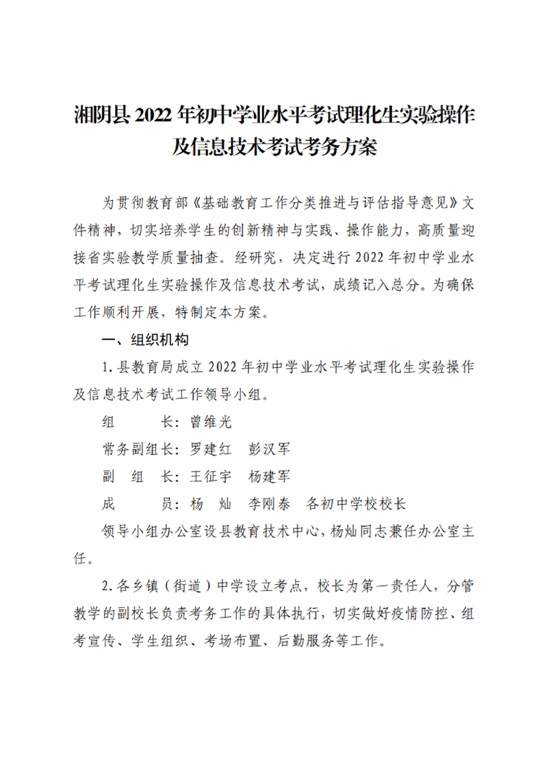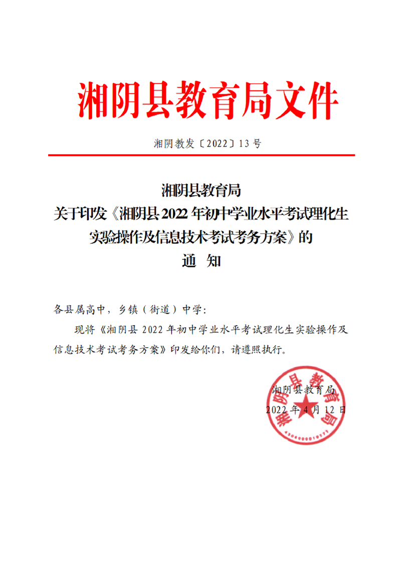 湘阴教发〔2022〕13号关于印发《湘阴县2022年初中学业水平考试理化生实验操作及信息技术考试考务方案》的通知
