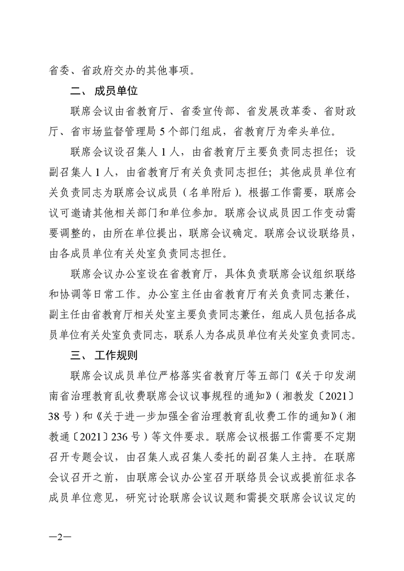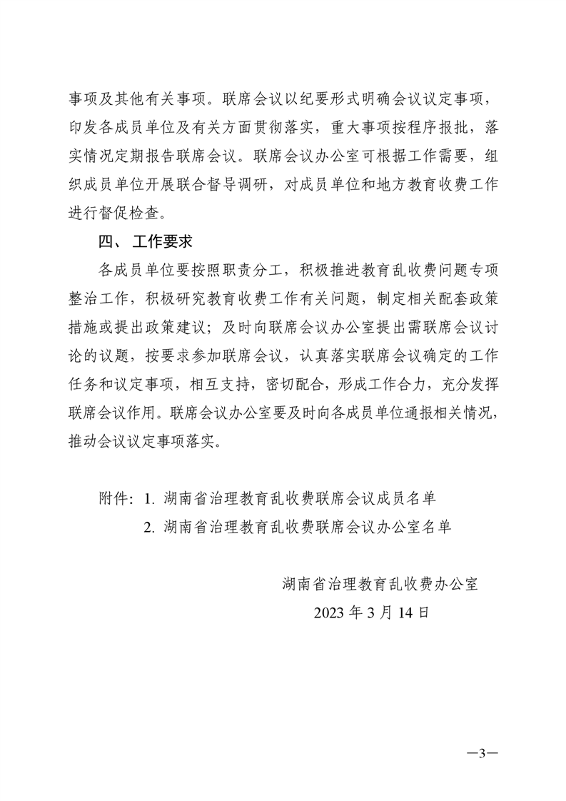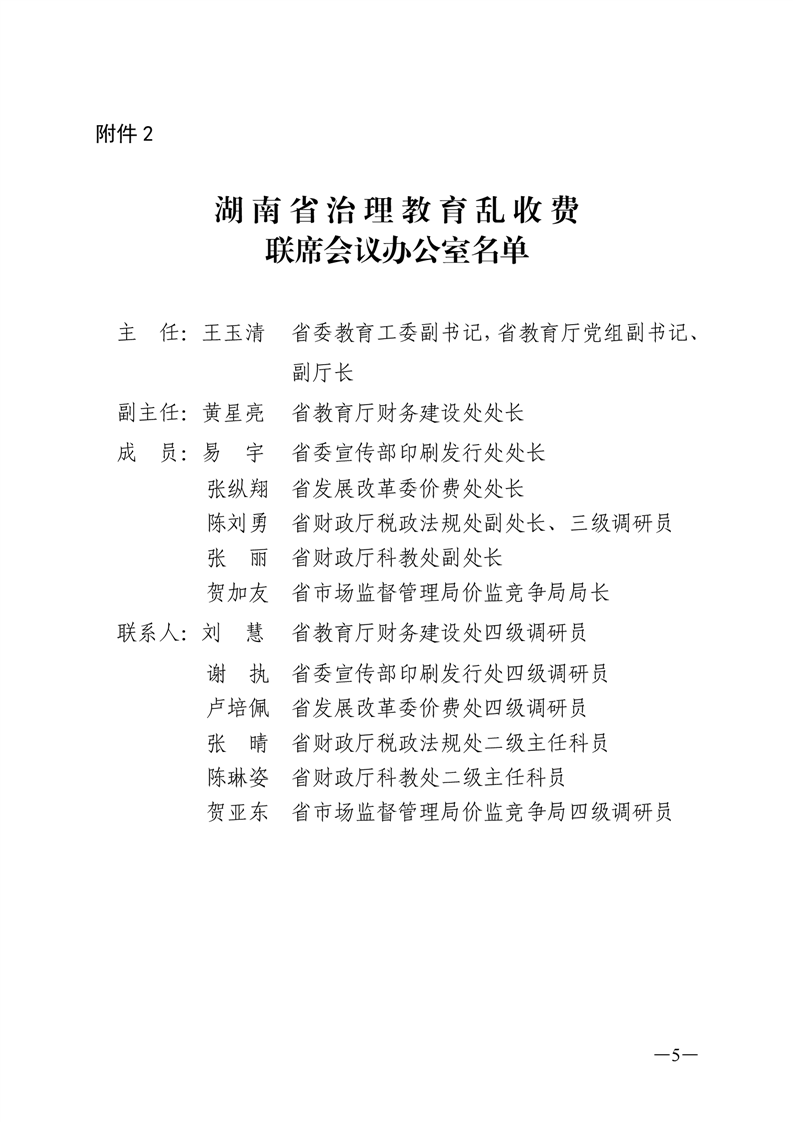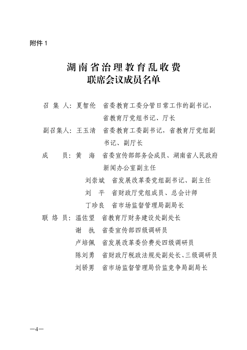 关于进一步调整完善湖南省治理教育乱收费联席会议制度的通知
