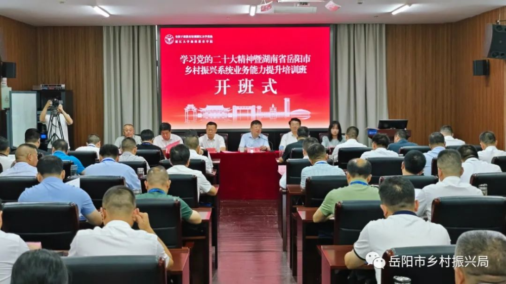 为进一步学习贯彻党的二十大精神,全面推进乡村振兴助推岳阳市经济社会高质量发展,7月3日,学习党的二十大精神暨岳阳市乡村振兴系统业务能力提升培训班在浙江大学开班。岳阳市人民政府党组成员、副市长陈阁辉,浙江大学继续教育学院党委书记兼副院长、全国干部教育培训浙江大学基地常务副主任(兼)胡炜出席,市农业农村局党组书记、局长黎朝晖,市乡村振兴局党组书记、局长游志坚,市纪委监委派驻市农业农村局纪检监察组组长王东培参加开班仪式。县市区农业农村局、乡村振兴局,和美示范创建村所在乡镇(街道)党(工)委主要负责人等58人参加培训。