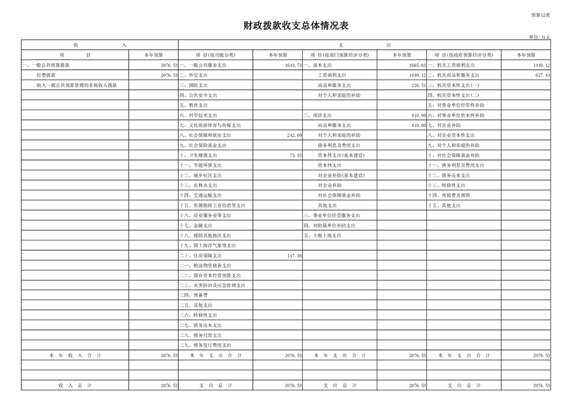 2022 年一般公共预算拨款收入 2076.53 万元,具体安排情况如下: