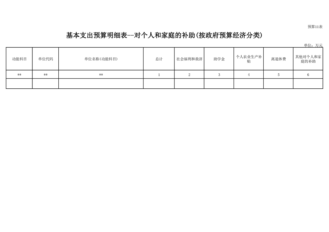 11、基本支出预算明细表-对个人和家庭的补助(按政府预算经济分类)