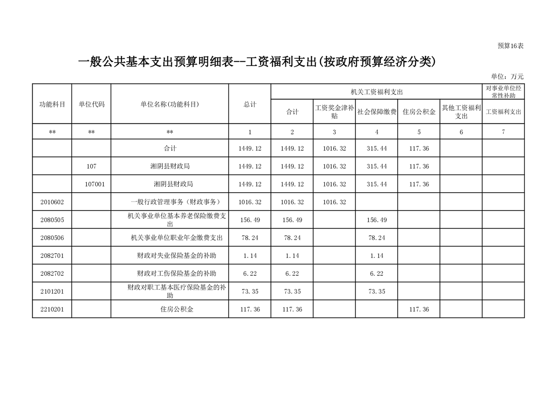 16、一般公共预算基本支出预算明细表-工资福利支出(按政府预算经济分类)