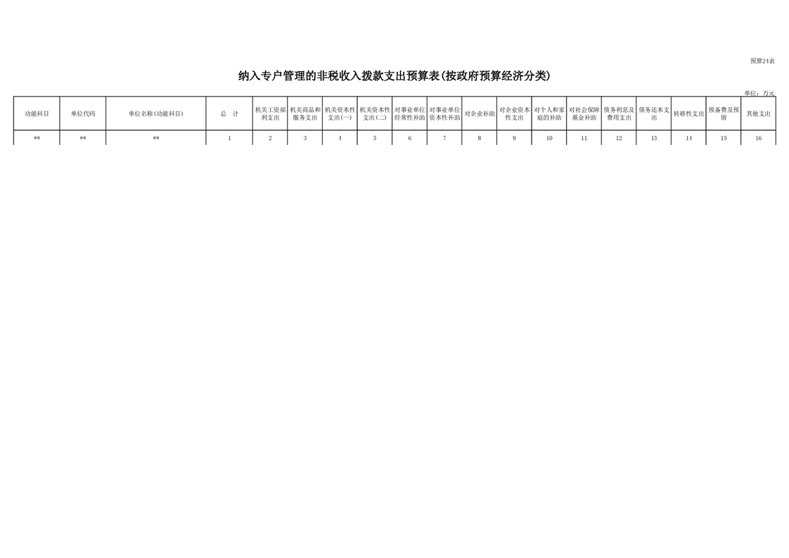 24、纳入专户管理的非税收入拨款预算分类汇总表(按政府预算经济分类)