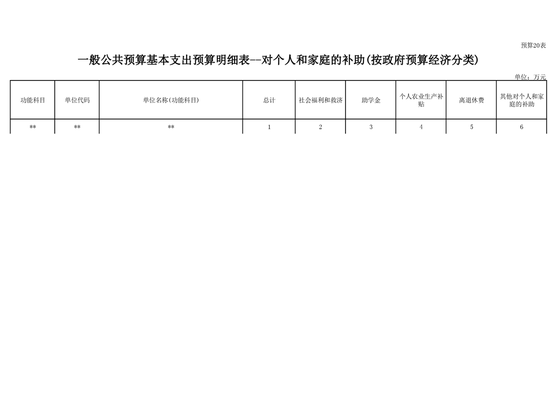 20、一般公共预算基本支出预算明细表-对个人和家庭的补助(按政府预算经济分类)