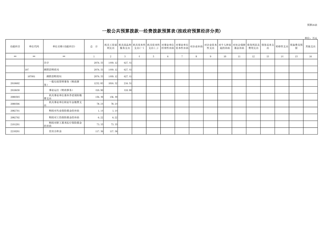 26、一般公共预算拨款--经费拨款预算表(按政府预算经济分类)