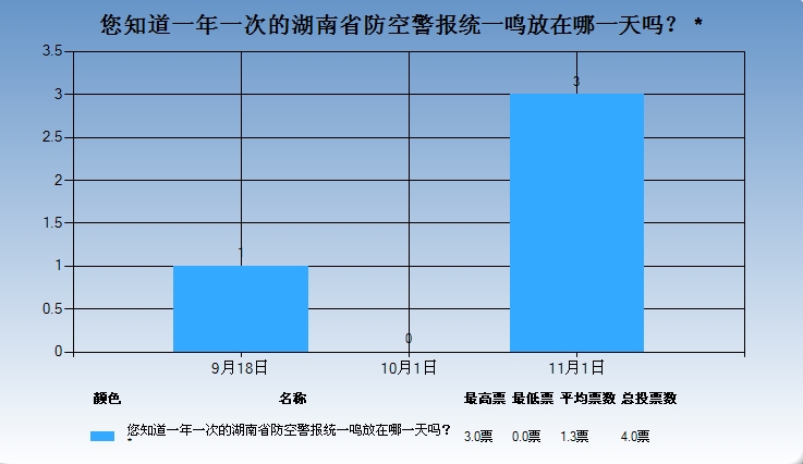 3、您知道一年一次的湖南省防空警报统一鸣放在哪一天吗? *(单选)