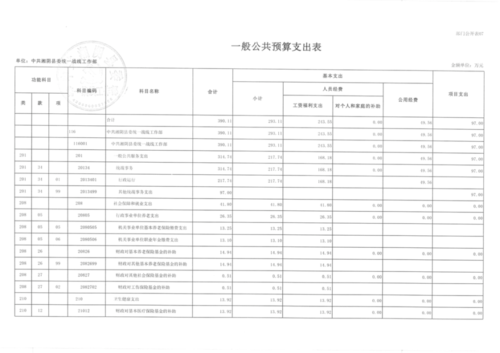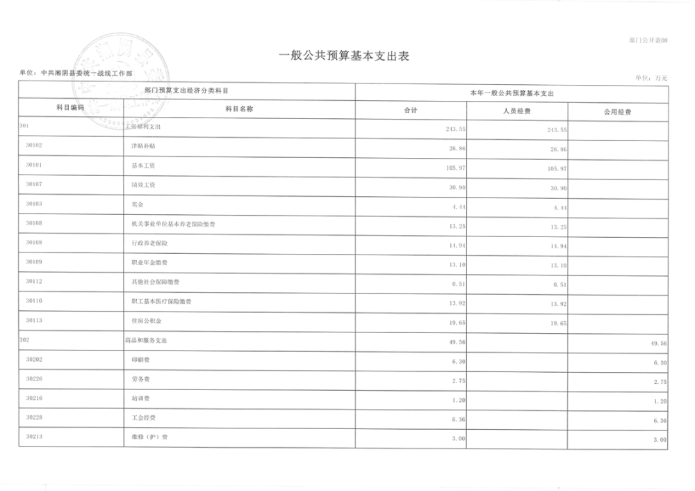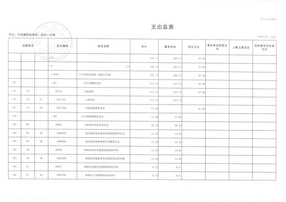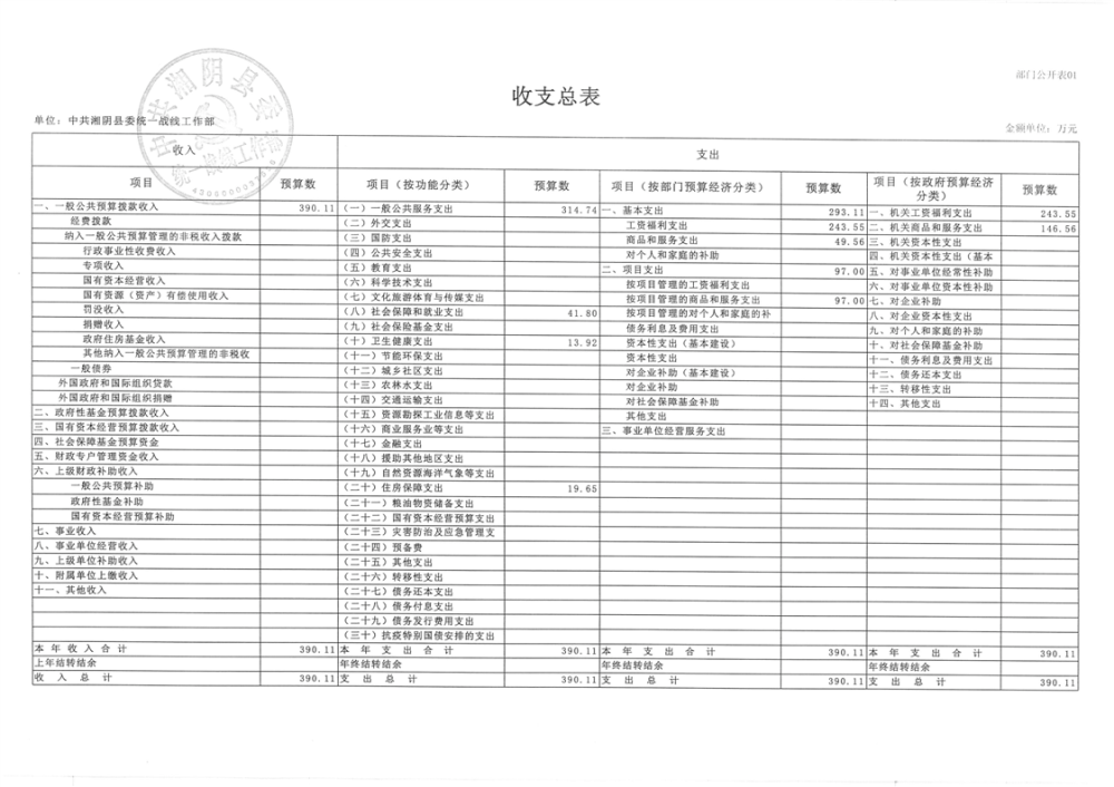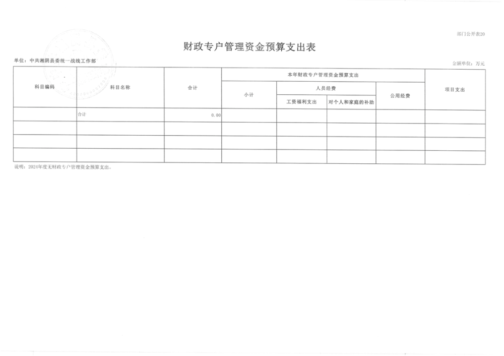 2024年度-中共湘阴县委统一战线工作部-预算公开