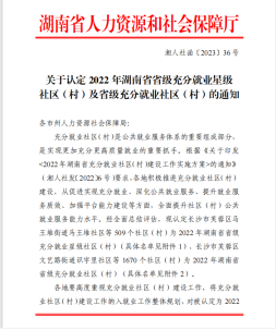 2.湖南省省级充分就业社区(村)。授奖单位:省人社厅;综合协调单位:洋沙湖镇名山村