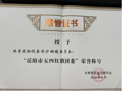 5.岳阳市五四红旗团委。授奖单位:共青团岳阳市委员会;获奖单位:共青团湘阴县洋沙湖镇委员会