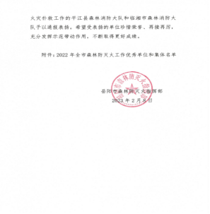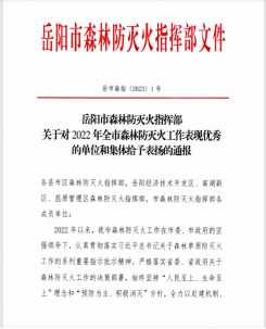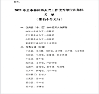 13.全市森林防灭火工作优秀单位。授奖单位:岳阳市森林防灭火指挥部;获奖单位:洋沙湖镇