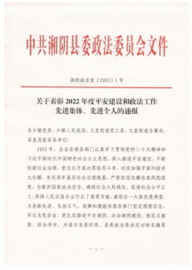 10.岳阳市“平安村”。授奖单位:岳阳市政法委;获奖单位:洋沙湖镇名山村