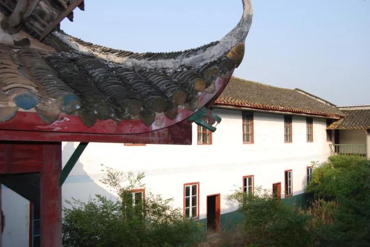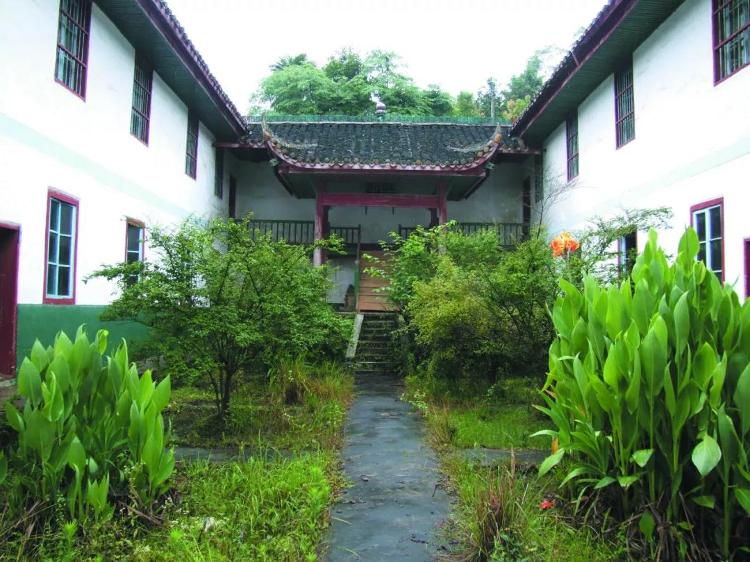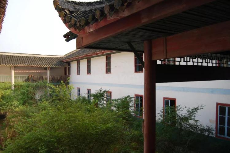 跨入中门,东西两边是二层砖木结构的八间教室,中间是一个长方形的天井,四周台阶,用整齐归一的条形麻石砌成。造型别致的“孔子堂”,上方紧靠中栋后墙,其余三方均用麻石砌成、台基高于天井五尺,整个亭阁由四根木柱支撑,孔子画像安放在亭内上方,两侧木壁雕有人物画像。