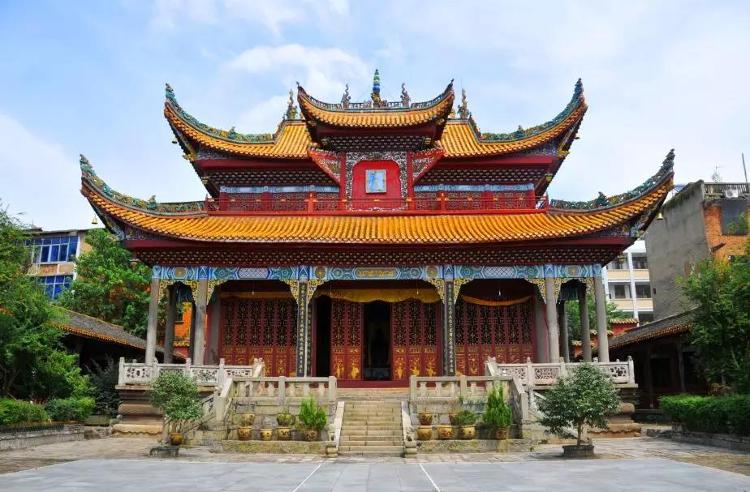 大成殿为文庙的主体建筑。砖木(石)结构,重檐歇山琉璃顶;二层前檐口建有一座庑顶单门牌坊,这种屋上叠坊,造型别致、独特的做法,更显得气度非凡。整座大成殿目前保存极为完好,由台基、月台、殿身、副阶周廊组成。台基为麻石质,须瓕座式,高2米。四圭角上镌刻力士神兽,腰枋上阳刻卷草、兵书宝剑、人物故事多种图案。台基面周边环以勾栏共47节:栏柱高1.15米,望柱头雕饰题材丰富,千姿百态。除本地习见的狮、象造型外,还有石榴头、仰覆莲、麻叶头、瑞兽、链锁、仙人头、八不蹭等多种形式;栏板也多用汉白玉镂刻花草或镂空几何纹图案,美不胜收。月台靠接前台基;月台正中为汉白玉蟠龙御路,东西两侧各砌台阶,置汉白玉勾栏、望柱,纹饰颇类台基勾栏。殿身面阔、进深均三间,即:面阔21米,进深17米,通高22.8米。首层共用三十六根立柱支承,其中殿中四根内金柱为楠木柱,余廊柱、老檐柱均为石柱;二层共用29根木柱,概用穿斗梁架。一层南立面共开格扇门共20扇,余三面皆用围护墙:内墙粉红灰,外墙刷红浆;二层大额枋下四面均开万字格花窗,外环0.40米宽的木栏廊道;二层内设楼复楼地面,并用内格扇围隔形成当心间,且装井口式天花吊顶。楼面处理,很有地方特色。一层周围廊内设挑尖梁,用穿斗架,梁下设船蓬轩顶,配穿插枋;正立面外檐设如意斗拱,余三面作外卷棚;二层外檐、屋顶牌坊的下檐均为如意斗拱,余三面均作外卷棚。重檐正立面中挑牌楼,牌楼柱门当心掛“大成殿”匾额,柱门内框装 “五龙捧圣”、“海水托日” 透雕落地式花罩,并在柱门外侧与斗拱层相交处,装饰有三角形的云凤雕板图案。大殿的屋面陡峭、巍峨,盖黄色琉璃瓦;正脊中央饰葫芦宝瓶,均为乾隆时期景德镇瓷窑产品:由霁红、霁绿、霁黄、霁兰四色瓶和青盘组成,嵌立在圆形器座上,圆内饰镂空松鹤图;用黄、绿色的降龙、立凤和镂空脊花板等琉璃构件装配正、垂、岔各脊,形成了色彩艳丽、比对鲜明的琉璃剪边顶。周廊外檐多施旋子彩绘,殿内井口天花饰盒子西蕃莲、团龙等彩绘;木柱、梁、枋、格扇门、扇窗均做褐红油饰;门扇裙板、涤环板木雕有精致的暗八仙、博古图、“三阳开泰”、“犀牛望月”等各色花鸟图纹,装饰十分华美。殿内后墙上嵌二方康熙年间青石原碑:左碑为二十五年(公元1686年)碑,通高3.65米,宽1.18米,碑额0.7米,刻“二龙戏珠”图,碑文 “御制孔子先师赞”; 右碑为二十八年(公元1689年)碑,刻“双凤朝阳”图,碑文“颜、曾、思、孟四配赞”。碑文皆由康熙帝玄烨御撰,户部尚书文华殿大学士张玉书书写。正殿原有孔子及四配等牌位,挂有康熙御书“万世师表”、雍正御书“生民未有”、乾隆御书“与天地参 ”、嘉庆御书“时中立极”等御匾及名人匾额、楹联,惜毁于“文革”。 大成殿是整个文庙的精华和核心,若登高远望,在天空和云霭的衬托下,大成殿雄立于现代楼群中,给人悠然古朴之美感。若临近观赏,则见大成殿雕梁画栋,屋脊的陶瓷游龙呼之欲出,重檐歇山式的筒瓦屋面,其正面挑出与众不同的庑殿式楣额,使人不得不佩服当年大殿建设者的聪明才智和精湛的建筑技艺。